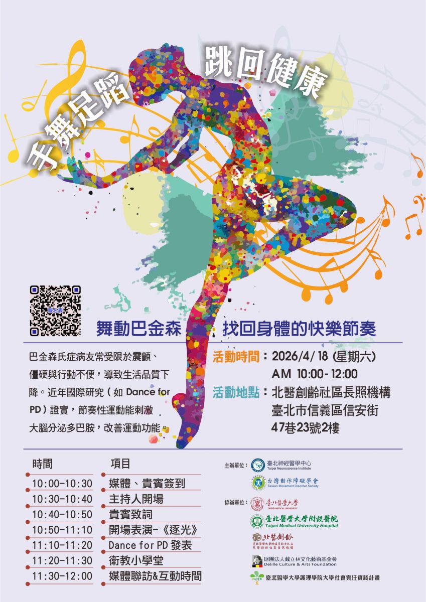 我們將於 2026年4月18日(星期六)上午 舉辦「舞動巴金森-找回身體的快樂節奏」記者會暨成果發表會。